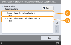 Če nastavite <Formatiranje metode kodiranja na FIPS 140> na <Vklj.>, lahko poskrbite, da bo način šifriranja komunikacije TLS skladen s standardom FIPS (Federal Information Processing Standards) 140, ki so ga odobrili državni organi Združenih držav, vendar pa veljajo te omejitve.