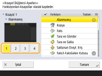<Ana Menü> ekranında fonksiyonlar için kısayol düğmesi oluşturabilirsiniz. <Ana Menü> ekranına geri dönmeden farklı bir fonksiyona erişmek için bu düğmeyi kullanın. Kısayol oluşturmak için yönetici ayrıcalıklarıyla oturum açın.