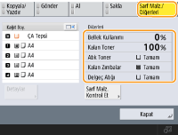 Uzak Kullanıcı Arabiriminden sarf malzemelerinde kalan miktarı kontrol edebilirsiniz. Makine Durumunu Denetleme