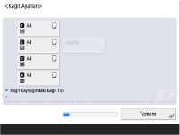 Ekran hakkında bilgi ve ayarları değiştirme talimatları için bkz. Kağıt Çekmecesinde Kağıt Boyutunu ve Türünü Belirtme.