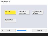 Yalnızca faks işlevini kullanırken <Oto Alım> seçeneğine veya makineye bir telefon veya ahize bağlıyken <Faks/Tel(Oto Değiştirme)> seçeneğine basın ve <Tamm> seçeneğine basın.