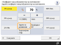 Копії можна збільшити або зменшити, вказавши коефіцієнт масштабування під час копіювання (%). Співвідношення по вертикалі та горизонталі можна вказувати окремо.