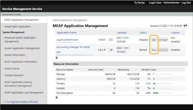 برنامه MEAP نصب شده است، اما آماده استفاده نیست. حتی اگر پس از توقف استفاده از برنامه MEAP، دستگاه را مجدداً راهاندازی کنید، عبارت [Installed] نمایش داده میشود.