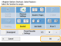 ثبت در <Favorite Settings>در <Favorite Settings>، می توانید مراحل پرکاربرد را برای کپی کردن، و همچنین مقصدها و تنظیمات پرکاربرد را برای اسکن کردن ثبت کنید. برای کسب اطلاعات بیشتر، به ثبت ترکیب عملکردهای پرکاربرد مراجعه کنید.