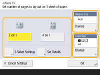 برای انجام کپی های دو رو، با اسکن اسناد اصلی دو رو روی کپی های یک رو، <2-Sided Settings> را فشار دهید. برای کسب اطلاعات بیشتر در مورد تنظیمات، به بخش «کپی دو رو» در مرحله 4 از