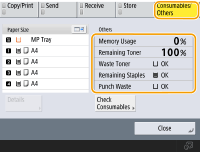 می توانید مقدار باقیمانده مواد مصرفی را از Remote UI (واسطه کاربر از راه دور) بررسی کنید. بررسی وضعیت دستگاه
