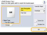 هنگام تغییر نوع یا اندازه کاغذاگر نوع کاغذ متفاوتی را در دستگاه بارگذاری کنید، حتماً تنظیمات را تغییر دهید. اگر تنظیمات را تغییر ندهید، دستگاه نمی تواند به درستی چاپ کند. تعیین اندازه و نوع کاغذ در کشوی کاغذ