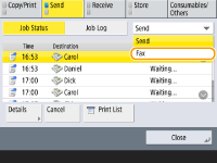 (توقف) را فشار دهید تا صفحه انتخاب کار ارسالی جهت لغو کردن نشان داده شود. اگر کار ارسالی که می خواهید لغو کنید نمایش داده نشد، <Check Other Jobs> را فشار دهید تا <Send Jobs> نمایش داده شود. کاری که می خواهید لغو کنید را انتخاب کنید و <Cancel> فشار دهید. |