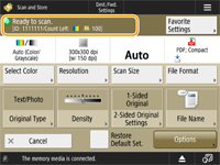 وقتی <Scan and Store> را در صفحه <خانه> فشار می دهید و سپس <Network> یا <Memory Media> را فشار می دهید تا اسناد اصلی را اسکن کنید، صفحه تنظیم زیر نمایش داده می شود.