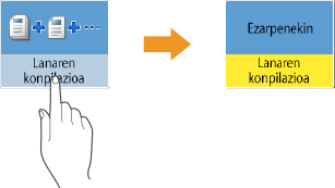 jarrita duen botoia ezarpen-pantaila bistaratzeko. Ezarpena egitean, ezarpen-egoera bistaratu egingo da botoiaren goiko atalean eta aldatu egingo da beheko ataleko kolorea.