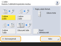 Ikusi funtzioen gida eta ohiko galderen orriaSakatu <Tutoriala/Ohiko galderak> makinaren funtzioekin egin dezakezuna erakutsiko dizun pantaila eta kopiatzea, eskaneatzea eta abar erabiltzeko gomendioak bistaratzeko. Ikusi pantaila hori gehiago jakiteko erabilgarri dauden funtzioen inguruan eta horiek nola erabili jakiteko. Ohiko galderen orrira gailu mugikor baten bidez ere sartu zaitezke.
