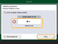 Sartu bidaltzeko ordua eta sakatu <Ados>.