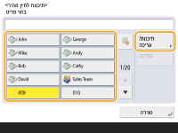 לא ניתן לשלב יעדים הרשומים בלחצני one-touch (נגיעה אחת) לקבוצה ולרשום אותם כיעד אחד. לפרטים, ראה רישום קבוצה בלחצן One-Touch (נגיעה אחת).