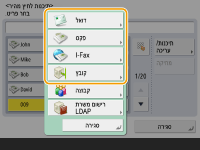 נוח לרשום יעד הנמצא בשימוש תכוף בלחצן one-touch. הדבר מאפשר לציין יעד במהירות בלחיצת לחצן פשוטה. בנוסף לרישום מספר פקס או כתובת דוא"ל בלחצן one-touch, ניתן גם לרשום מיקום של תיקייה בשרת קבצים (כתובת IP ונתיב) כדי להשתמש בה לצורך שמירת נתונים שנסרקו.