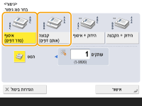 בעת צילום שני צילומים או יותר מהמזין, ניתן לבחור איסוף או קיבוץ למען סדר ההדפסות. בחר "אסוף" כדי להדפיס בסדר עמודים עוקב. בחר "קיבוץ" כדי להדפיס חבילות מכל עמוד, כמו למשל 10 גיליונות לעמוד הראשון, 10 גיליונות לעמוד השני וכן הלאה.