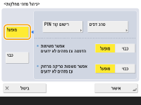 הזן מספר בן 7 ספרות או פחות עבור PIN ולחץ <אישור>. לאישור, הזן שנית את ה-PIN ולחץ <אישור>. אם אינך מעוניין להגדיר PIN, השאר פריט זה ריק.