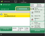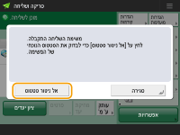 כאשר האפשרות <הצגת הודעה כאשר משימה מתקבלת> מוגדרת כ-<מופעל>, ניתן להציג את המסך <ניטור סטטוס> sמהמסך העוקב המוצג לאחר שמתקבלת משימה בשליחה. <הצגת הודעה כאשר משימה מתקבלת>