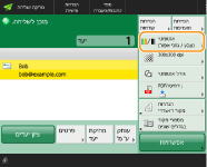 אם תגדיר את האפשרות <אפשר פקס בפונקציית 'סריקה ושליחה'> כ-<מופעל>, תוכל לציין יעדי פקס ממסך תכונות הסריקה הבסיסיות (‎<הצגת פונקציית הפקס>‎). הגדרה זו שימושית לציון יעדים מרובים כולל יעדי פקס, למשל כאשר שומרים עותק של פקס שנשלח בשרת קבצים.