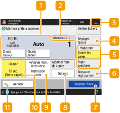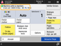Lorsque vous appuyez sur <Accès aux fichiers enregistrés> dans l’écran <Accueil>, puis sur <Réseau> ou <Support mémoire> pour imprimer des fichiers, l'écran de réglage suivant s'affiche.