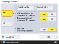 Voor informatie over het aantal afdelings-ID's dat u kunt registreren, raadpleegt u Beheerfuncties. |