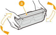 Ravista väriainekasettia viisi tai kuusi kertaa alla näytetyn mukaisesti, jotta väriaine leviää tasaisesti kasetin sisällä, ja aseta sitten kasetti tasaiselle alustalle.
