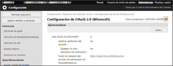 Aparece la pantalla [Configuración de OAuth 2.0 (Microsoft)].