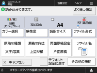 機能によっては、<コピー>または<スキャンして送信>の機能を参照しています。