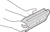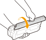 Agite el cartucho de tóner cinco o seis veces tal y como se muestra a continuación para distribuir uniformemente el tóner dentro del cartucho y, a continuación, colóquelo sobre una superficie plana.