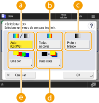 Pode selecionar o modo de cor para cópia. Esta função permite, por exemplo, poupar toner copiando originais com cor a preto e branco ou copiar bilhetes com uma só cor (por exemplo, vermelho ou azul) para indicar a data em que são distribuídos.