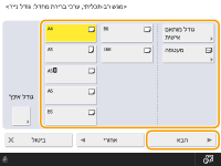 אם תרשום את גודל הנייר שבו אתה משתמש לעתים תכופות בלחצנים <S1> עד <S4>, תוכל להגדיר את הגדלים בנגיעה אחת. רישום נייר בגודל חופשי (גודל נייר מותאם אישית)