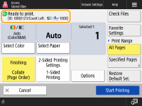 اگر مدیریت شناسه بخش محدودیت صفحه تعیین کرده باشد، شماره صفحات باقیمانده نمایش داده میشود. برای اطلاعات مربوط به مدیریت شناسه بخش و محدودیت صفحات، به پیکربندی تنظیمات مدیریت شناسه بخش مراجعه کنید.