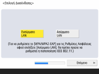 Αν επιλέξατε <Ασύρματο LAN>, καθορίστε τις ρυθμίσεις ασύρματου LAN.