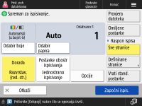 Mogućnosti zaslona postavki ispisivanja