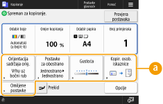 Promjena zadanih postavki na zaslonu s osnovnim značajkamaNakon promjene postavki za svaku funkciju, trenutačne postavke možete registrirati kao zadane na zaslonu s osnovnim značajkama tako da pritisnete