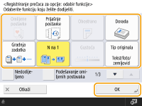 Registriranje u izborniku <Omiljene postavke>U izborniku <Omiljene postavke> možete registrirati često upotrebljavane postupke za kopiranje, kao i često zadavana odredišta i postavke za skeniranje. Dodatne informacije potražite u odjeljku Registriranje kombinacije često upotrebljavanih funkcija.