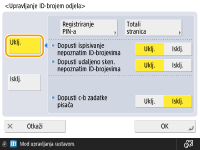 Upravljanje ID-brojevima odjela valjano je samo za korisnike koji su registrirani na lokalnom uređaju.
