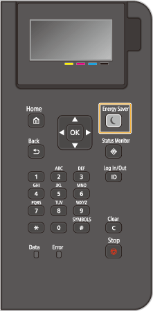 En mode veilleLorsque la machine passe en mode veille, (Energy Saver) s'allume en jaune vert.Situations dans lesquelles la machine ne passe pas en mode veilleLorsque la machine est en fonctionnement Lorsque le voyant Données est allumé ou clignote Panneau de commande Lorsque la machine effectue une opération telle qu'un réglage ou un nettoyage En cas de bourrage papier Quand l'écran menu s'affiche Si <Régl heure fin mode veille/éco énergie> est réglé sur <Non> lorsqu' une erreur apparaît Lorsque l'écran SSID/Clé réseau pour la connexion directe est affiché Lorsque les réglages sont en cours d'importation ou d'exportation |