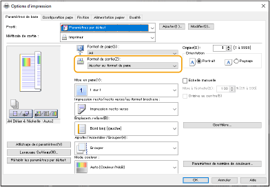 Faites correspondre [Format de sortie] dans le pilote de l'imprimante avec le format du papier sur lequel imprimer.