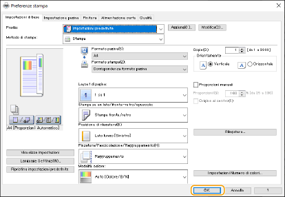 Specificare le impostazioni di stampa secondo le necessità e fare clic su [OK].