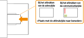 In dit gedeelte wordt uitgelegd hoe u briefkaarten in de gewenste afdrukstand plaatst. Daarnaast worden de stappen besproken die u moet uitvoeren voordat u briefkaarten plaatst. Zie Basismethode voor het plaatsen van papier voor een beschrijving van de algemene procedure voor het plaatsen van briefkaarten in de papiertafel. |
