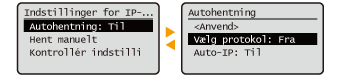 Du kan ændre en række forskellige skærmrelaterede indstillinger, såsom skærmsproget: <Visningsindstillinger> Du kan ændre den skærm, som vises automatisk, når maskinen forbliver i tomgang i et angivet tidsrum: <Funktion efter auto-nulstilling> Du kan ændre en række forskellige tilgængelighedsrelaterede indstillinger, såsom rullehastigheden: <Tilgængelighed> |