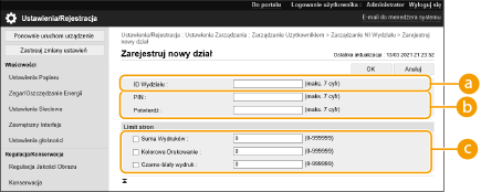 Upewnij się, że NI wydziału zostało prawidłowo ustawione dla użytkowników zarejestrowanych w urządzeniu. Rejestracja informacji o użytkowniku w urządzeniu lokalnym