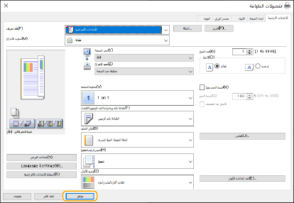 حدد إعدادات الطباعة حسب الضرورة، ثم انقر فوق [موافق].
