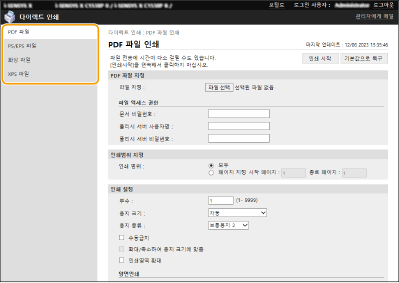 ![]() | 리모트 UI를 사용하면 컴퓨터나 네트워크에 저장된 파일을 프린터 드라이버를 사용하지 않고 기기에서 직접 인쇄할 수 있습니다. 인쇄하기 위해 컴퓨터에서 파일을 열지 않아도 됩니다. |