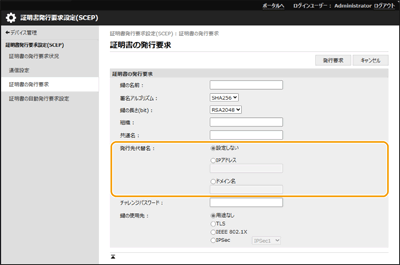 リモートUIで証明書の発行を要求するとき、[発行先代替名]が設定できるようになりました。