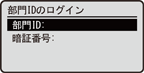 部門別ID管理を行っていないときシステム管理部門IDと暗証番号だけで管理しているときは、管理者権限が必要な設定をするときのみログイン操作が必要です。<システム管理部門ID>と<システム管理暗証番号>を入力し、 (認証)を押してください。 |