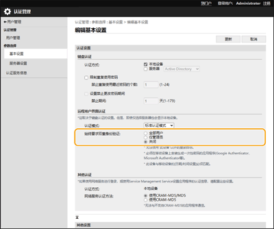 现在可以要求注册的用户在登录用户界面时执行双因素认证。选中此复选框以要求进行双因素认证。