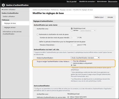 Vous pouvez désormais demander aux utilisateurs enregistrés d’effectuer une authentification à deux facteurs lorsqu’ils se connectent à l’interface utilisateur distante. Cochez la case pour exiger une authentification à deux facteurs.