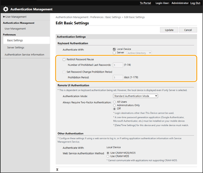 Nüüd saate keelata kasutajale parooli muutmise ajal varem kasutatud parooli kasutamise. Märkige ruut [Restrict Password Reuse] ja konfigureerige sellele seadele vastav varasemate paroolide arv.