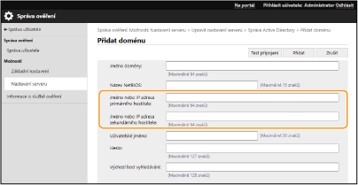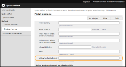 Zadejte název domény cíle přihlášení v [Jméno domény:] v rámci [Nastavený název domény pro přihlašovací účet].